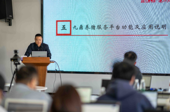 2023年集團(tuán)的亮點(diǎn)之一是建立九鼎養(yǎng)豬服務(wù)平臺(tái)。研發(fā)中心江書忠博士為大家講解《九鼎養(yǎng)豬服務(wù)平臺(tái)之九鼎母豬生產(chǎn)成績(jī)改進(jìn)及提升系統(tǒng)方案》。江博士介紹當(dāng)前背景下,九鼎必須構(gòu)建母豬生產(chǎn)成績(jī)改進(jìn)及提升系統(tǒng)方案。江博士分享了九鼎試驗(yàn)基地案例,母豬各環(huán)節(jié)飼養(yǎng)目標(biāo)及常見問題的說明及影響母豬生產(chǎn)成績(jī)的因素。最后重點(diǎn)講解九鼎養(yǎng)豬服務(wù)平臺(tái)功能及應(yīng)用說明,并在2023年研發(fā)中心重點(diǎn)工作中對(duì)九鼎母豬生產(chǎn)成績(jī)改進(jìn)及提升系統(tǒng)方案規(guī)劃相關(guān)課程。