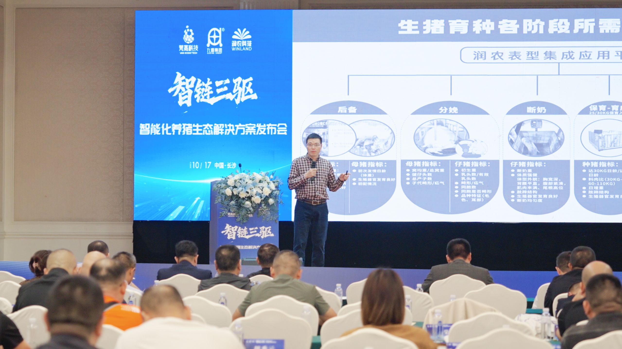 2025年10月17日,九鼎集團攜潤農科技、梵高科技在湖南省長沙市明城國際大酒店成功舉辦“智鏈三驅-智能化養(yǎng)豬生態(tài)解決方案發(fā)布會”,推出其全新的智能化養(yǎng)豬生態(tài)解決方案。此次大會匯集了行業(yè)專家與養(yǎng)豬業(yè)同仁近300人齊聚一堂,共同探討如何通過智能化技術提升養(yǎng)豬業(yè)的競爭力。會議由集團運營中心總經理王衛(wèi)忠主持。