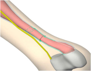1、患者取俯臥位,麻醉后大腿中上段扎止血帶,下肢驅(qū)血。術(shù)中抗生素預(yù)防感染。